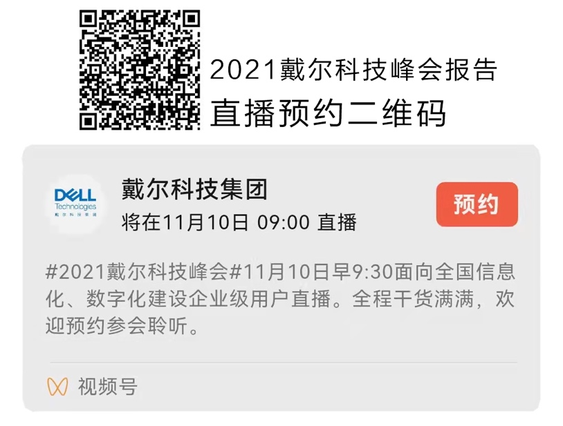 #2021戴尔科技峰会#11越10日早9:30面向全国信息化、数字化建设企业级用户直播。直播平台微信视频号“戴尔科技集团”。