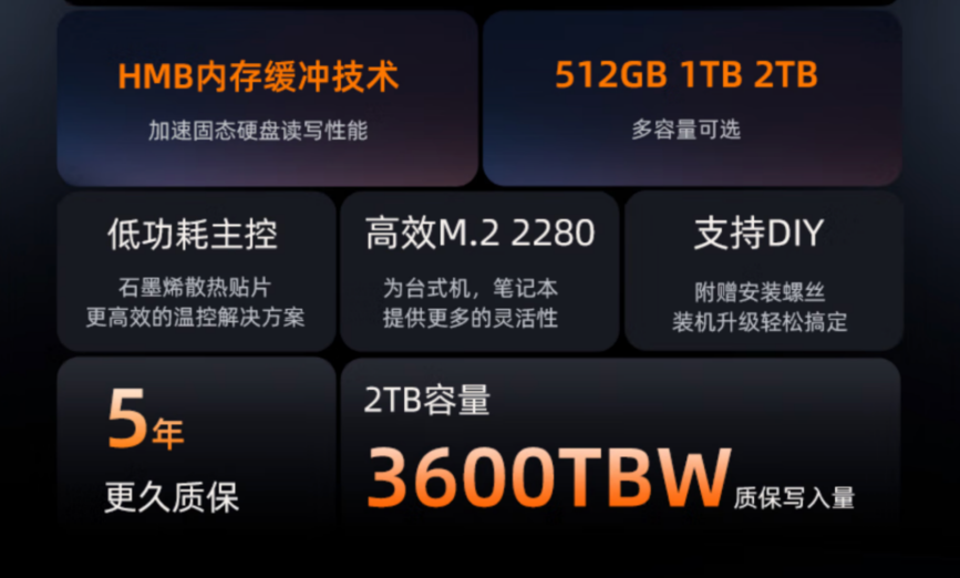 优选长江存储3D TLC闪存颗粒,联芸旗舰主控