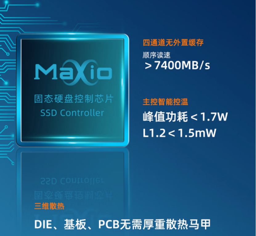 在主控方面二者使用的是来自联芸的新一代MAP1602主控芯片,使得读取速度超过7000MB/s。联芸的主控可不简单,除了对PCIe Gen4.0 x 4的传输协议,还支持HMB内存缓冲技术,可以大大提高固态硬盘在使用中的读写性能,为大型3A游戏地图加载,场景切换提供极好的硬件支持。像我平时剪视频修图的时候更高的读写性能可以带来更加流畅的体验,也不会因为读写不够卡住的情况出现。
